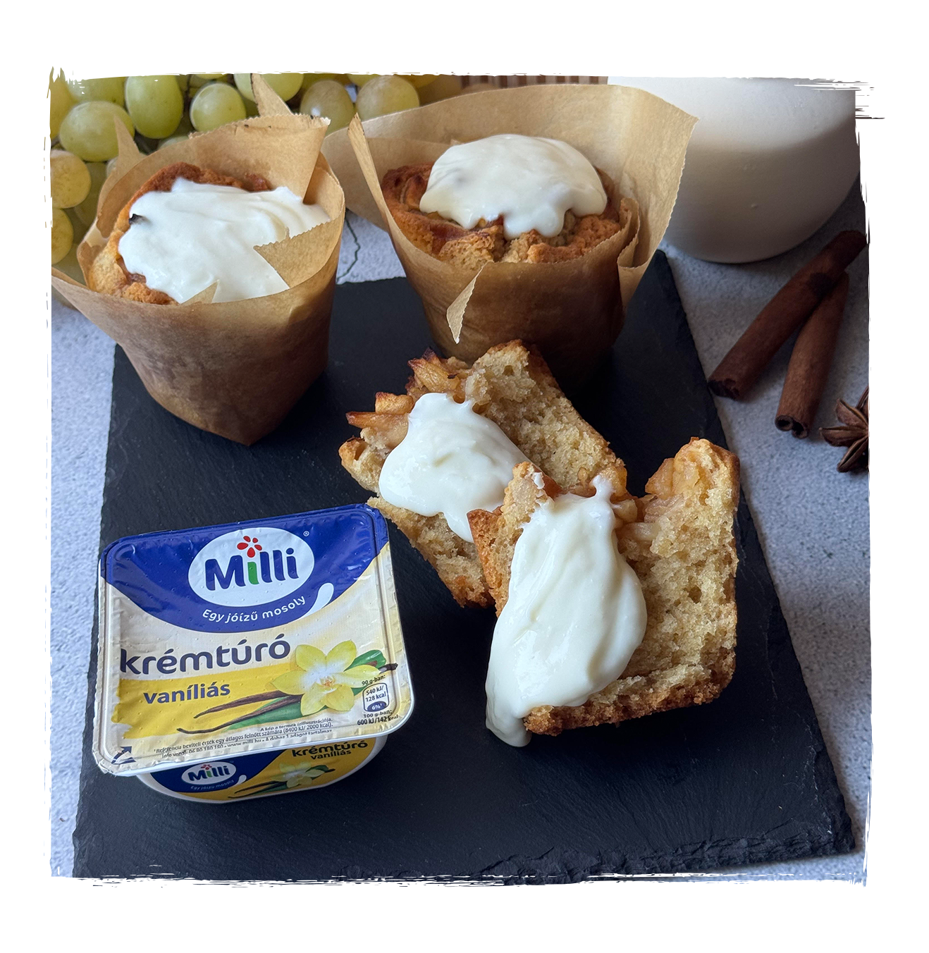 Megvárjuk amíg kihűl és Milli vaníliás Krémtúróval tálaljuk.