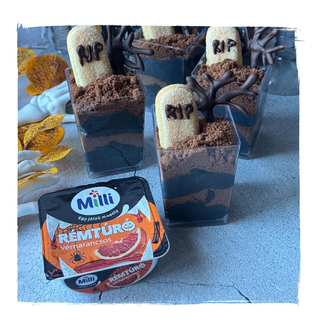 Alulra került a Milli Rémtúró, erre kanalaztam a kekszet, majd a rétegezést megismételtem.
